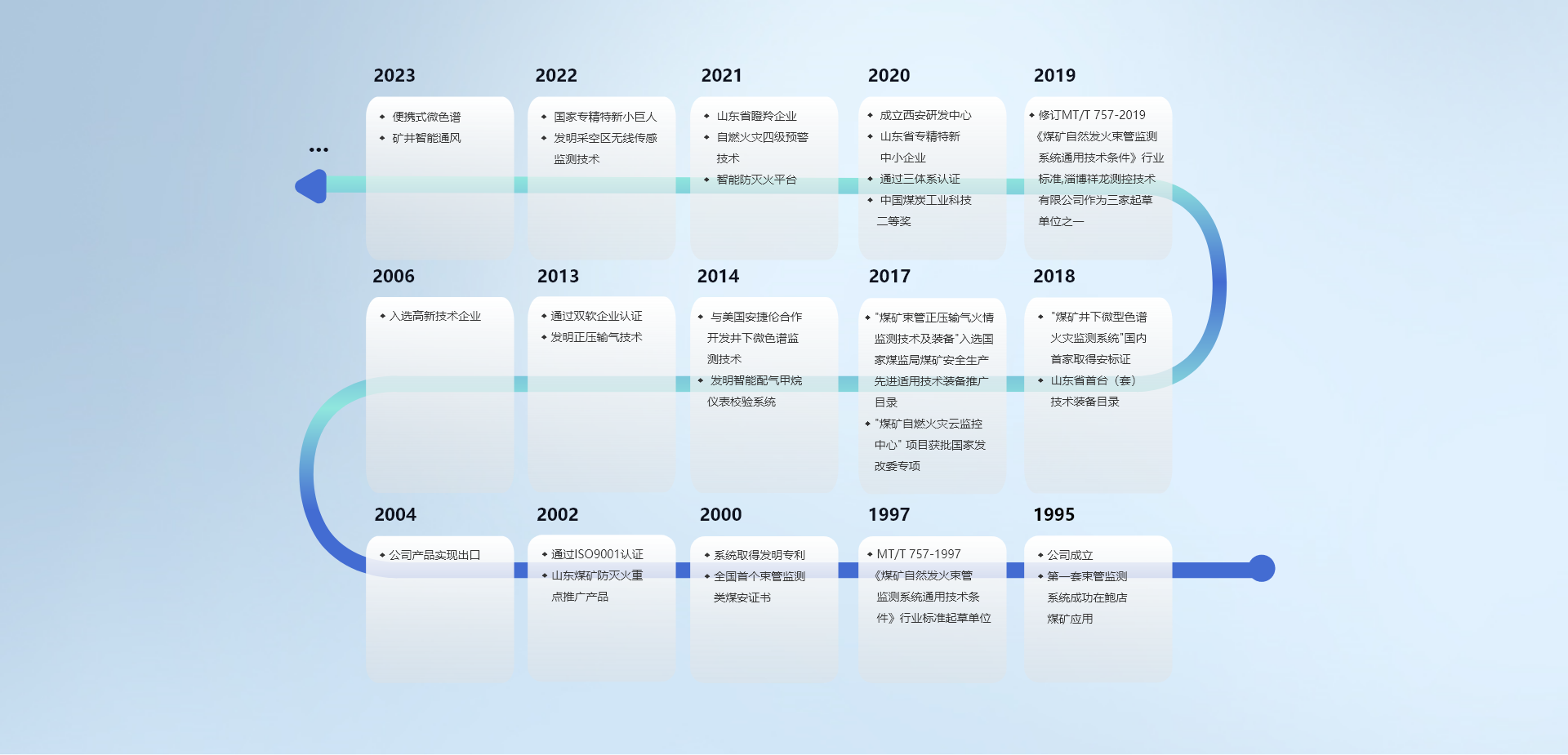 淄博祥龍測(cè)控技術(shù)有限公司,成立于1995年,是我國(guó)最早致力于煤礦、地下綜合管廊等地下封閉空間安全智能裝備研發(fā)、生產(chǎn)和技術(shù)服務(wù)的企業(yè),為目前國(guó)內(nèi)規(guī)模最大的煤礦自燃火災(zāi)監(jiān)測(cè)設(shè)備研發(fā)、生產(chǎn)企業(yè)之一。公司現(xiàn)擁有包括各類高科技專業(yè)人才在內(nèi)的員工110余人,研發(fā)中心配備有教授2人、博士3人、碩士2人、本科24人,高中級(jí)專業(yè)技術(shù)職稱人員8人。公司總占地面積30余畝,其中科研場(chǎng)地面積8000㎡。公司設(shè)有西安、北京兩大研發(fā)中心,建設(shè)有煤礦自燃火災(zāi)大數(shù)據(jù)移動(dòng)機(jī)器人實(shí)驗(yàn)室、煤礦自燃火災(zāi)大數(shù)據(jù)分布式終端實(shí)驗(yàn)室、人工智能與安全技術(shù)研究院等實(shí)驗(yàn)室。